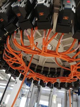 为了让每个托盘都可以适应于各种瓶型,托盘均采用伺服电机进行角度和位置的调整-在机器上,多达30个甚至60个伺服系统来进行定位控制。由于机器空间紧凑,因此,采用了贝加莱的“背包电机”—它将伺服驱动器和电机集成于一体的ACOPOSmotor,它体积小,且支持多圈绝对值编码器,记忆多圈位置。
